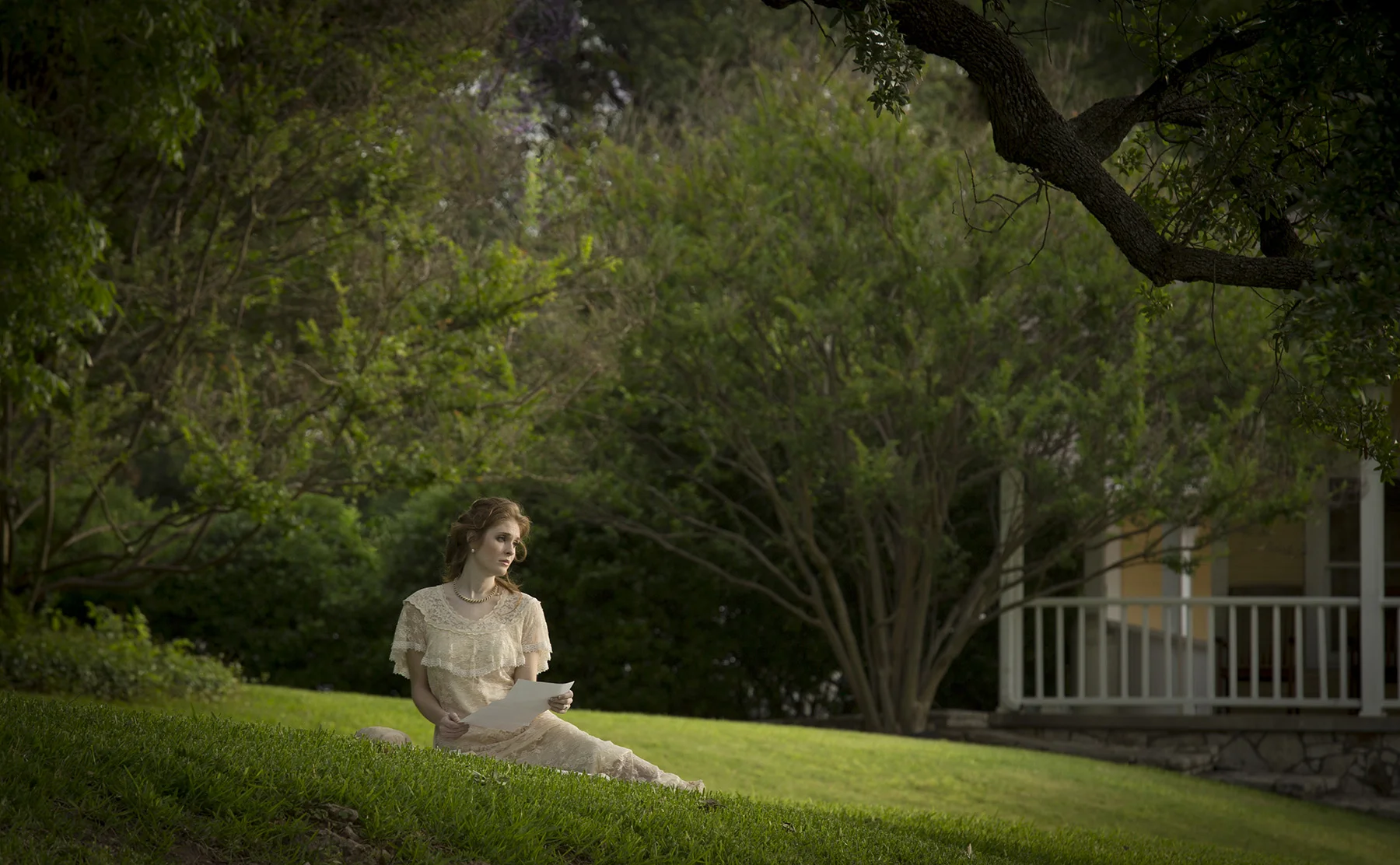 As the light was ever-changing we would change the tone of the image, finally settling on a suggestion from Mandy Lynn Lundy. She gave the model a paper to hold as if it was “A Letter From The Front”, indicating bad news from an early war. Her period clothing and hair helped to tell this story and this became our final selected image.
