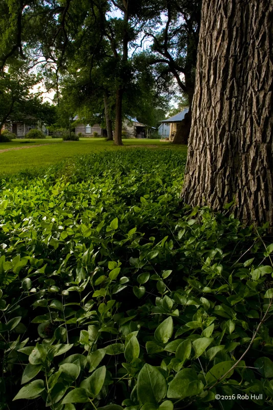This image uses hyperfocal to help illustrate the lush grounds of a Texas bed and breakfast.