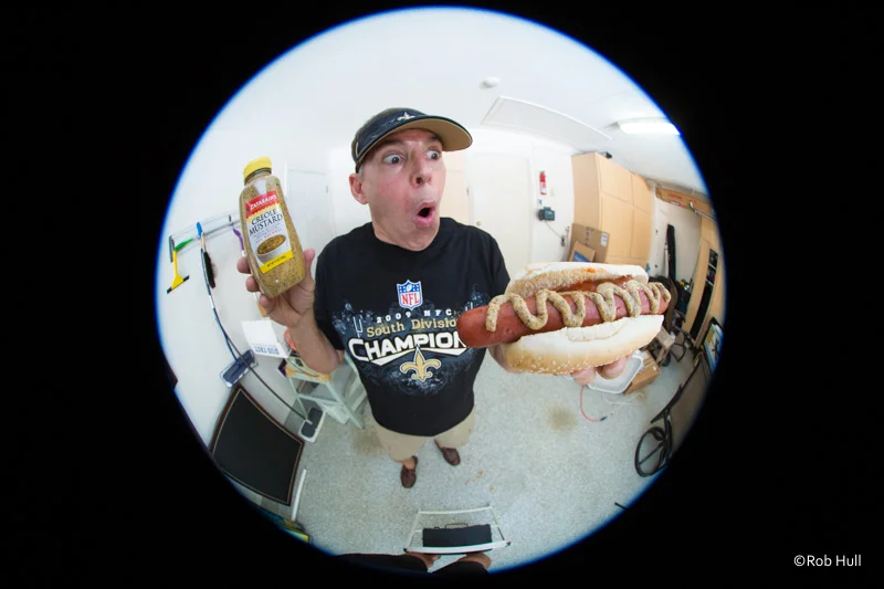 I used a fisheye lens to really exaggerate the perspective of this image. After all, the star is really the hot dog.